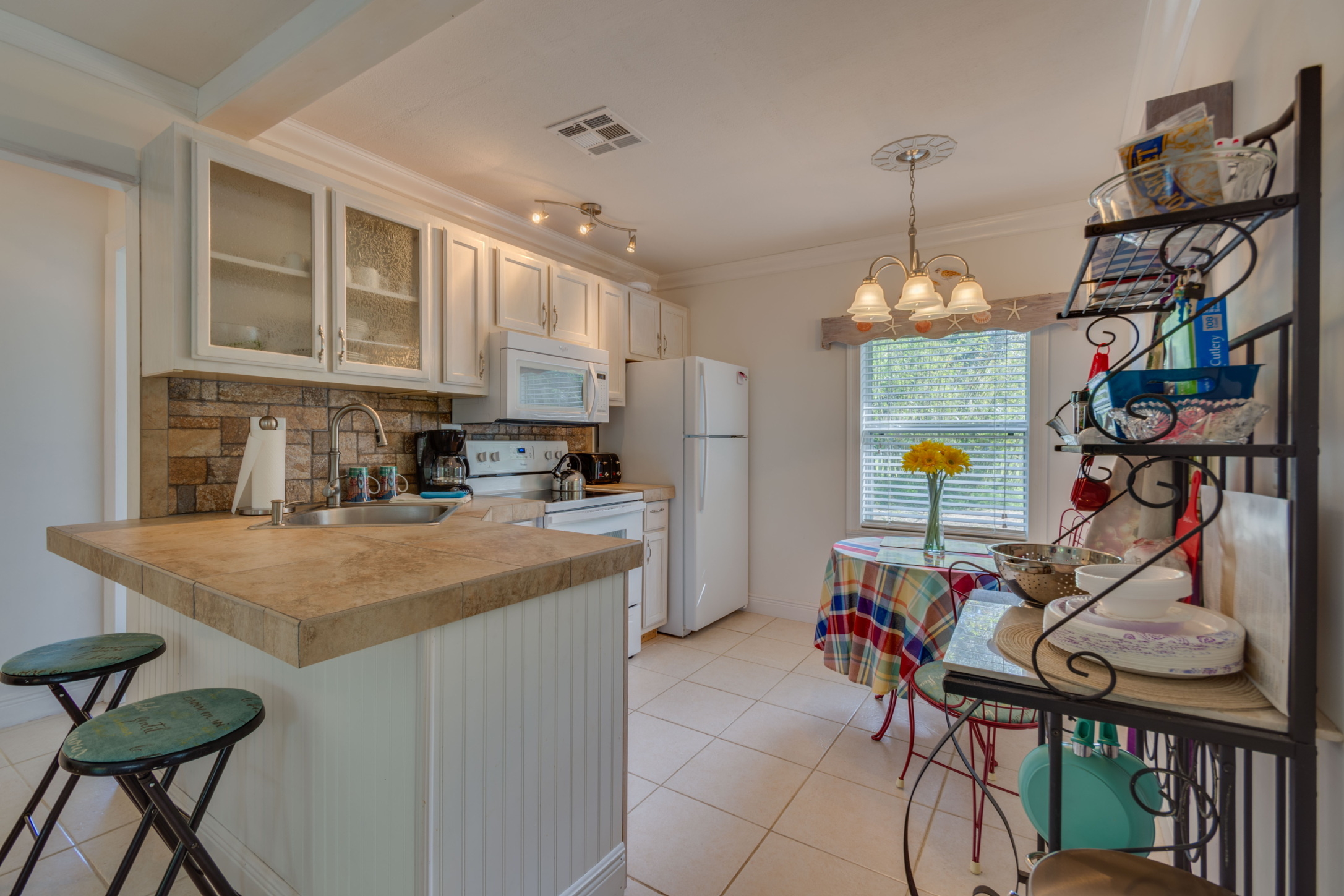 - The grill is ready to fire up. Fresh condiments in the fridge. Coffee, tea, sweeteners, paper plates, napkins, popcorn, and marshmallows for roasting. Lots of wood for the firepit.